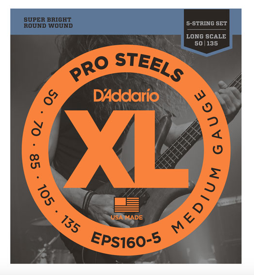 EPS160-5 is the 5-string version of D’Addario’s top-selling heavy gauge ProSteels bass string set. With the addition of the .135